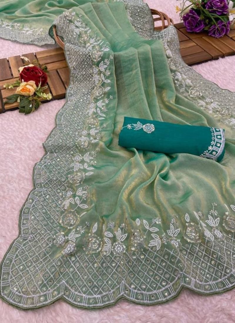FabricBurburry silk | SAREE LENGTH- 5.50 Mtr | SAREE WORK – sequence jari work | BLOUSE FABRIC- Mono banglori silk with sequence jari work | Blouse comes with 0.80 mtr (Single Available – 100 Rs. Per Pcs Extra for Singles)