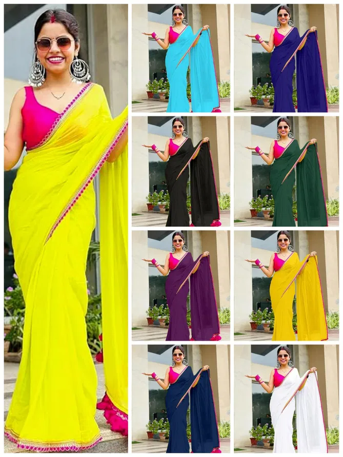 SAREE FABRIC :- GEORGETTE | SAREE LENGTH:- 5.50 METER | BLOUSE LENGTH:- 0.80 METER | BLOUSE FABRIC:- BENGLOR | (Single Available – 100 Rs. Per Pcs Extra for Singles)