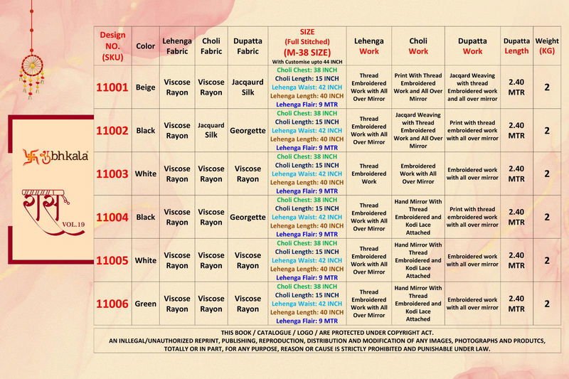 Shubhkala Raas Vol 19 Viscose Rayon Designer Navratri Lehenga Choli Wholesale Catalog