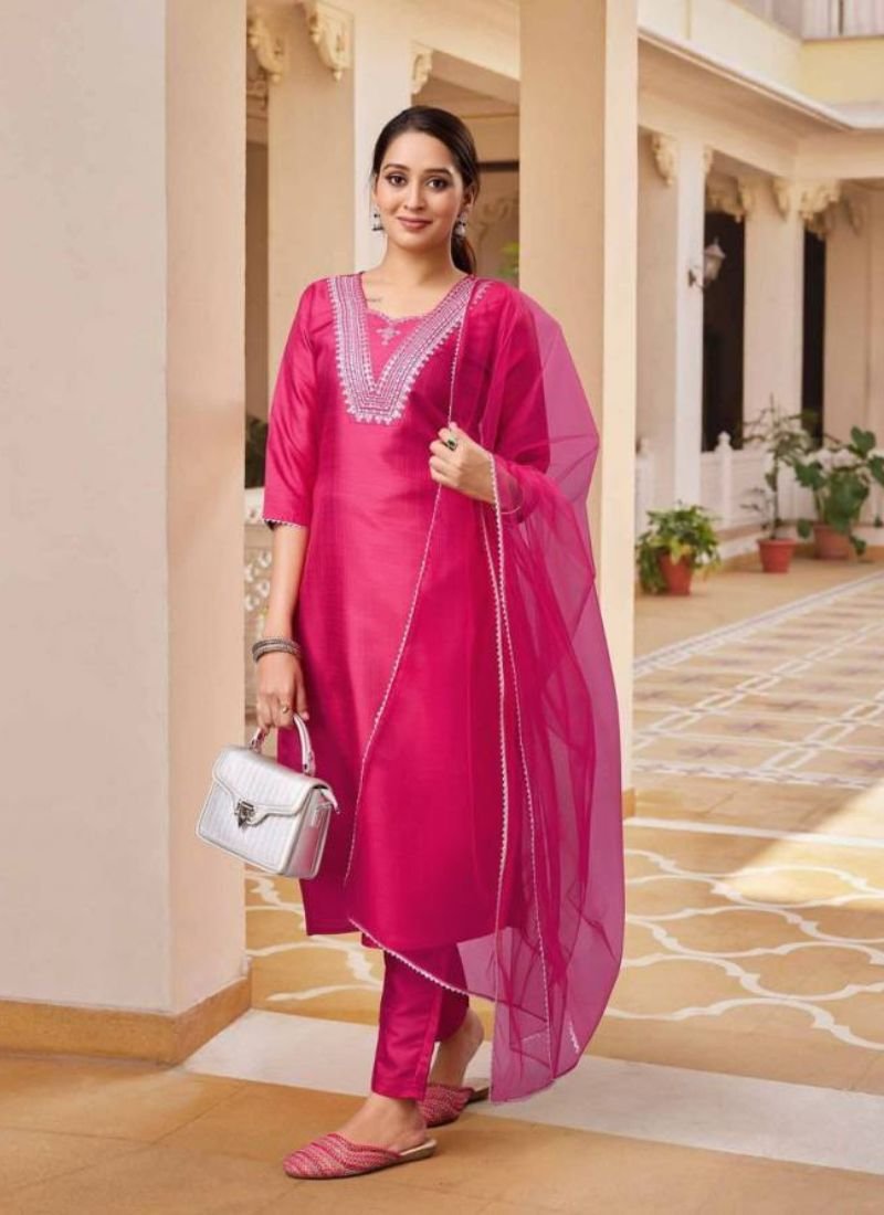 FabricKurta Fabric: Cotton Blend+ Embroidery work Length:41+ | Bottom wear Fabric: Cotton | Length:38+ | Dupatta : Soft net with lace border (Single Available – 100 Rs. Per Pcs Extra for Singles)
