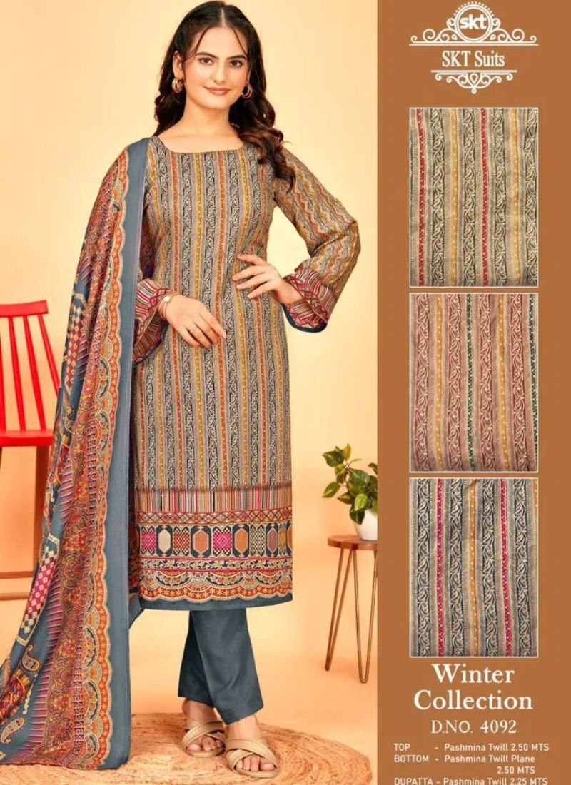 Sk Winter Collection 4092 Pashmina Printed Dress Material Wholesale Catalog