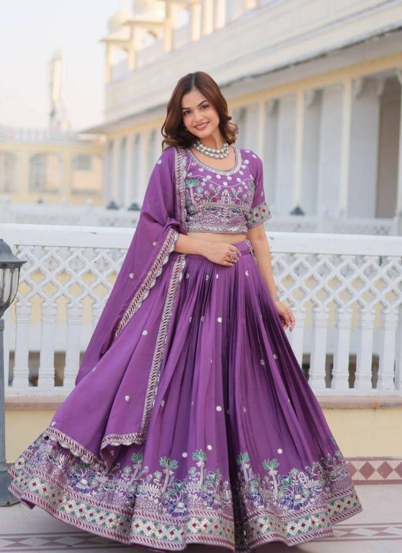 FabricLehenga: Chinon | Length: 42″ | Size: Free size upto 44 Inch (Dori Not Available) | Flair: 3.5 Mtr. | Lining: Micro Cotton | Blouse: Chinon Size: M Upto L Margin And XL Upto XXL Margin (Fully Stitched) | Dupatta: Chinon 2.30 Mtr. | Work: Sequins Thread Embroidered
