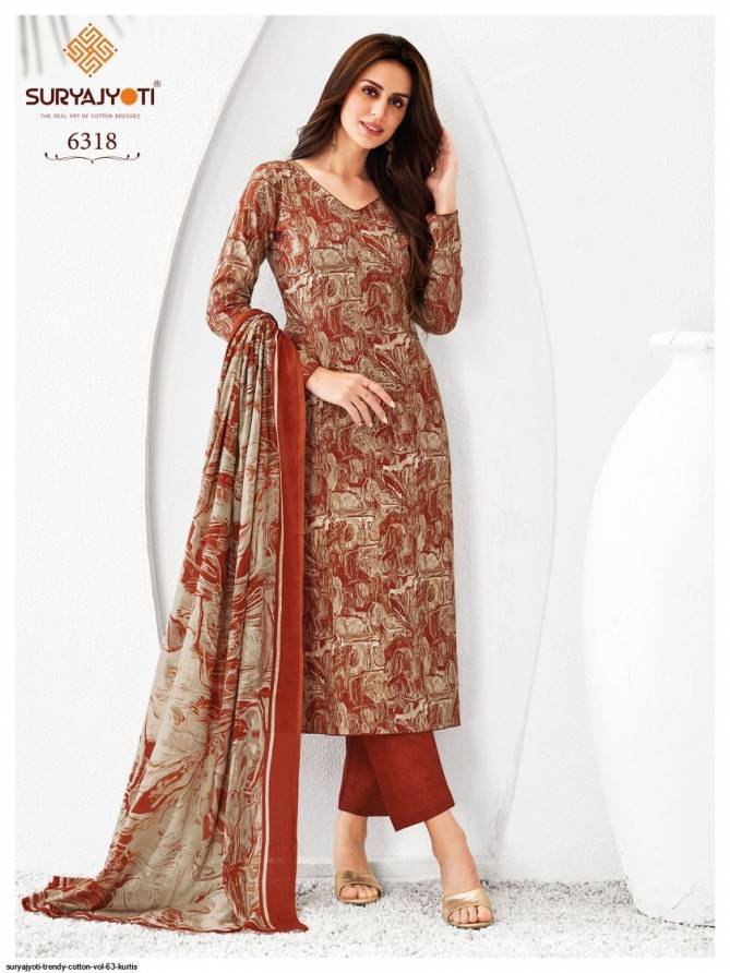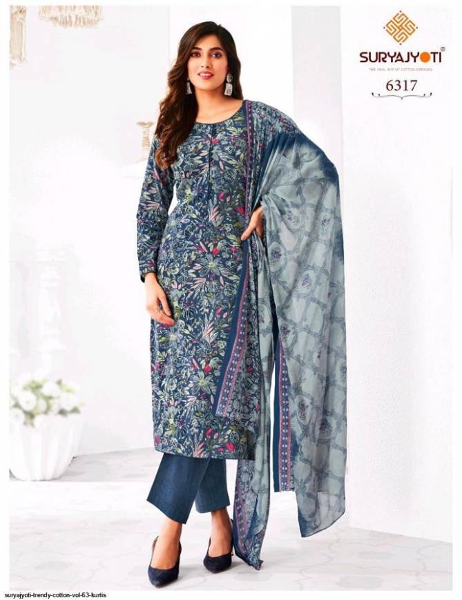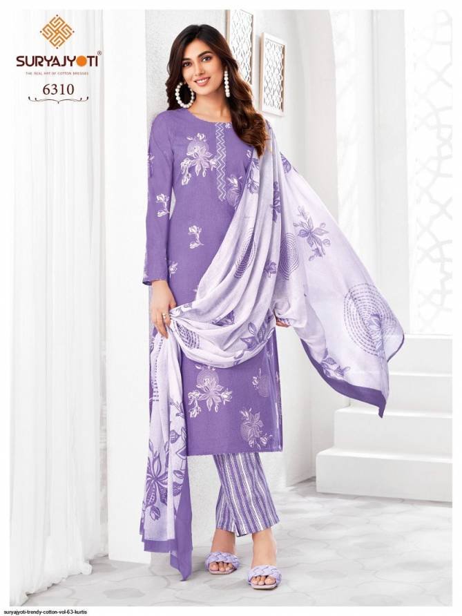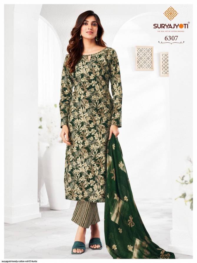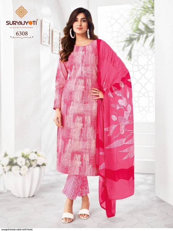 Suryajyoti Trendy Vol 63 Cotton Printed Kurti With Bottom Dupatta Wholesale Catalog