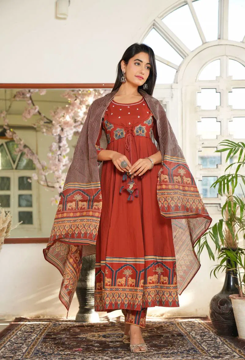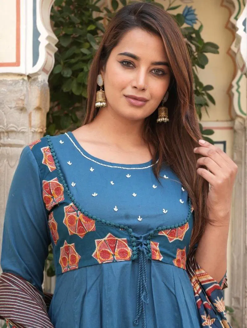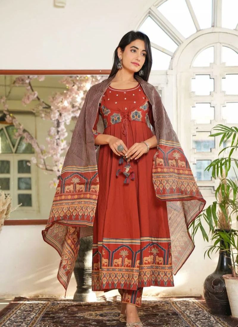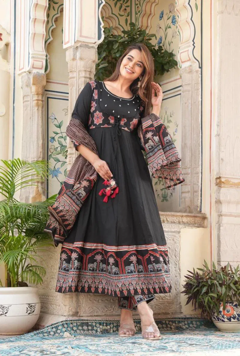 FabricTop : Cotton With Work And Neck Side Hand Work Touch Up | Bottom/Dupatta : Cotton With Lace Border Work | Size Set : M To Xxl |
