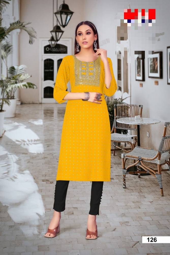 Tip Top 1 New Gold Printed Designer Rayon Kurtis Wholesale Catalog
