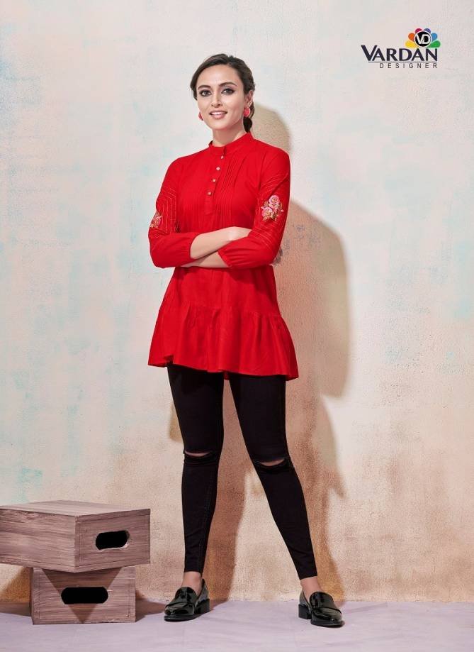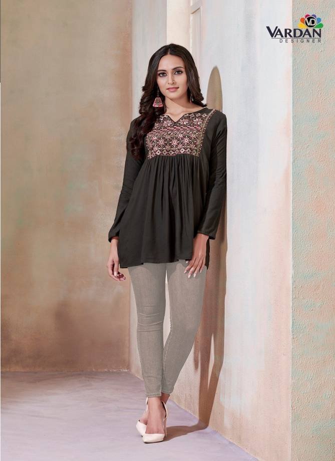Vardan Ira Vol 1 Rayon With Embroidery Work Wholesale Ladies Top Western Catalog
