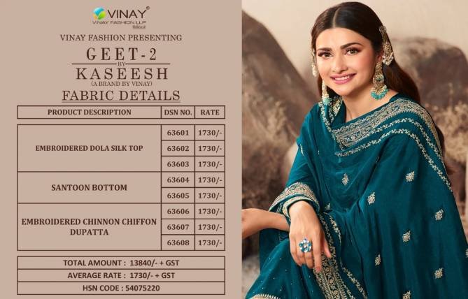 Vinay Kaseesh Geet 2 Heavy Silk Designer Wholesale Salwar Suit Catalog