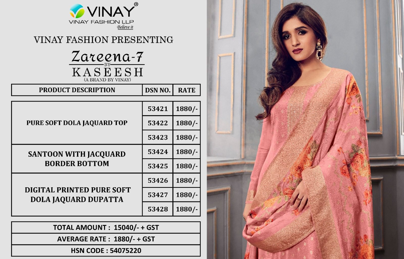 Vinay Kaseesh Zareena 7 Jacquard Designer Wholesale Salwar Suit Collection