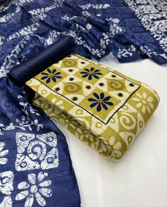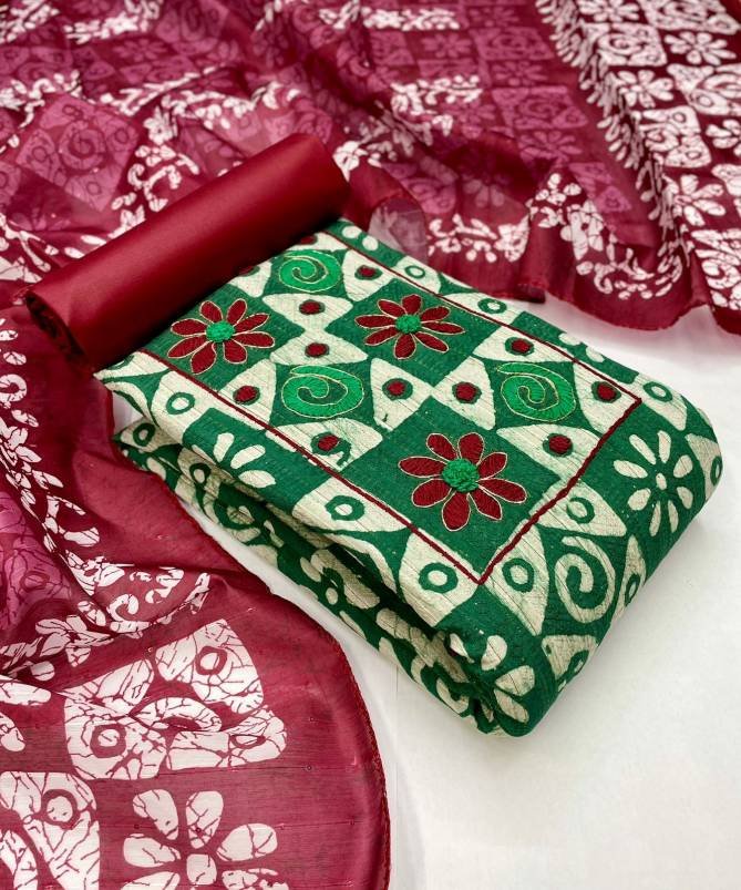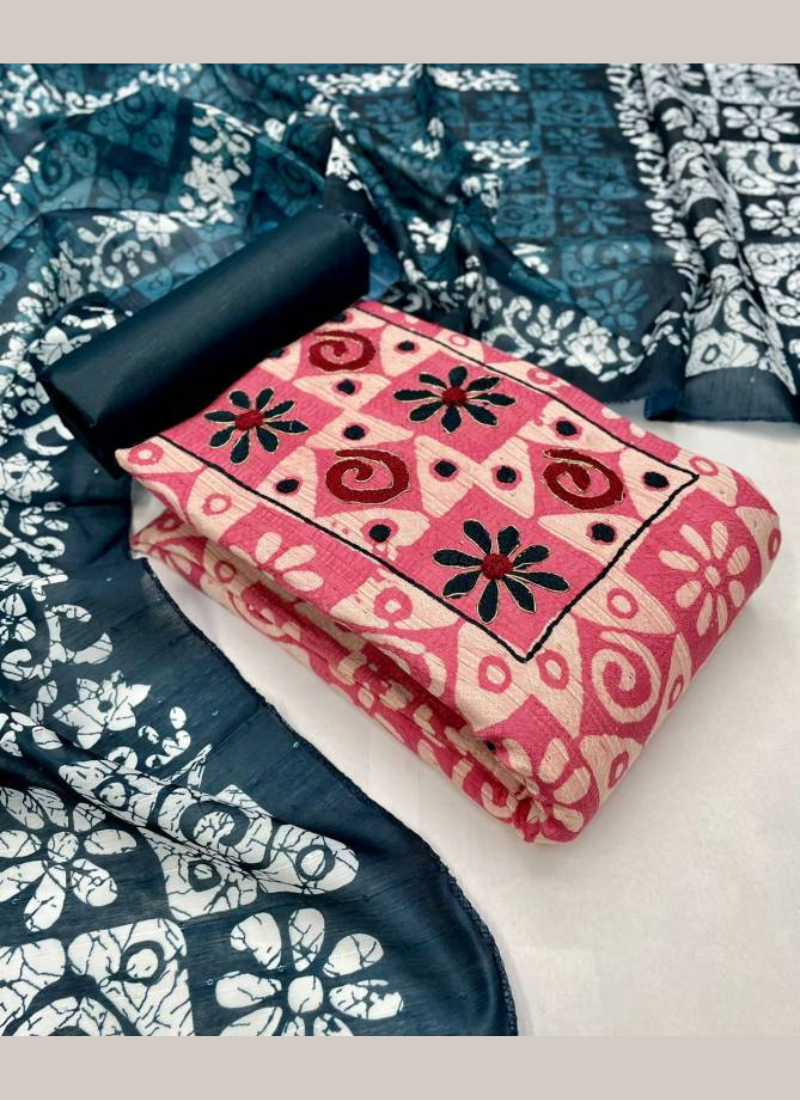 Top:- Viscous Dobby Sequin Jequard with Original Batik Print with Handwork 2.5 Mtr | Bottom:- Cotton 2.5 Mtr | Dupatta:- Soft Chanderi Sequin Work with Batik Print 2.25 Mtr