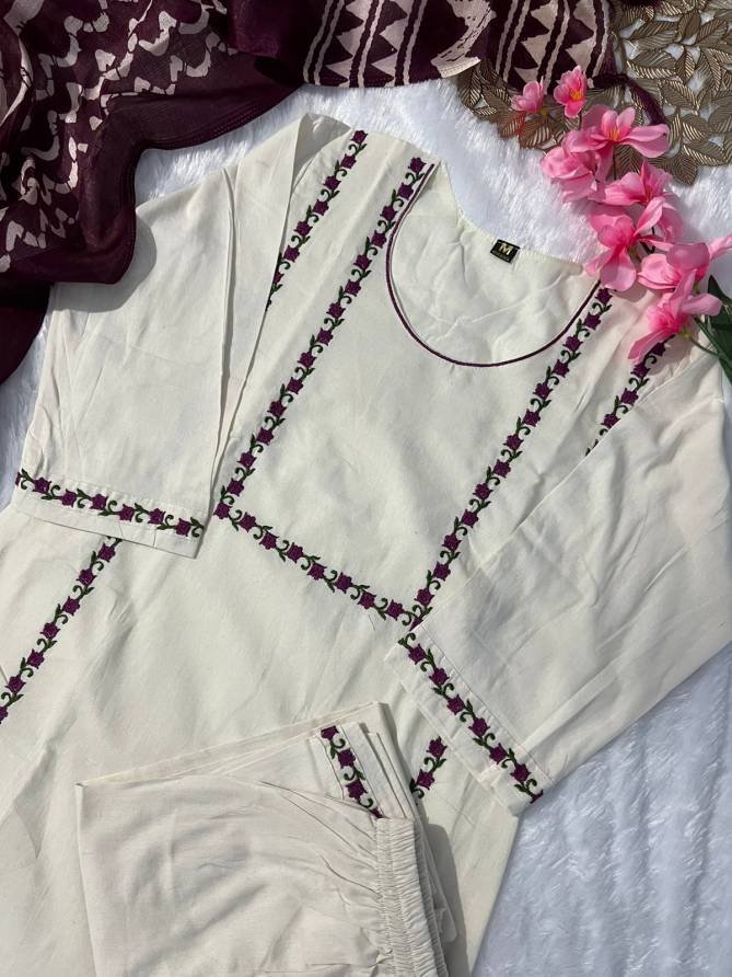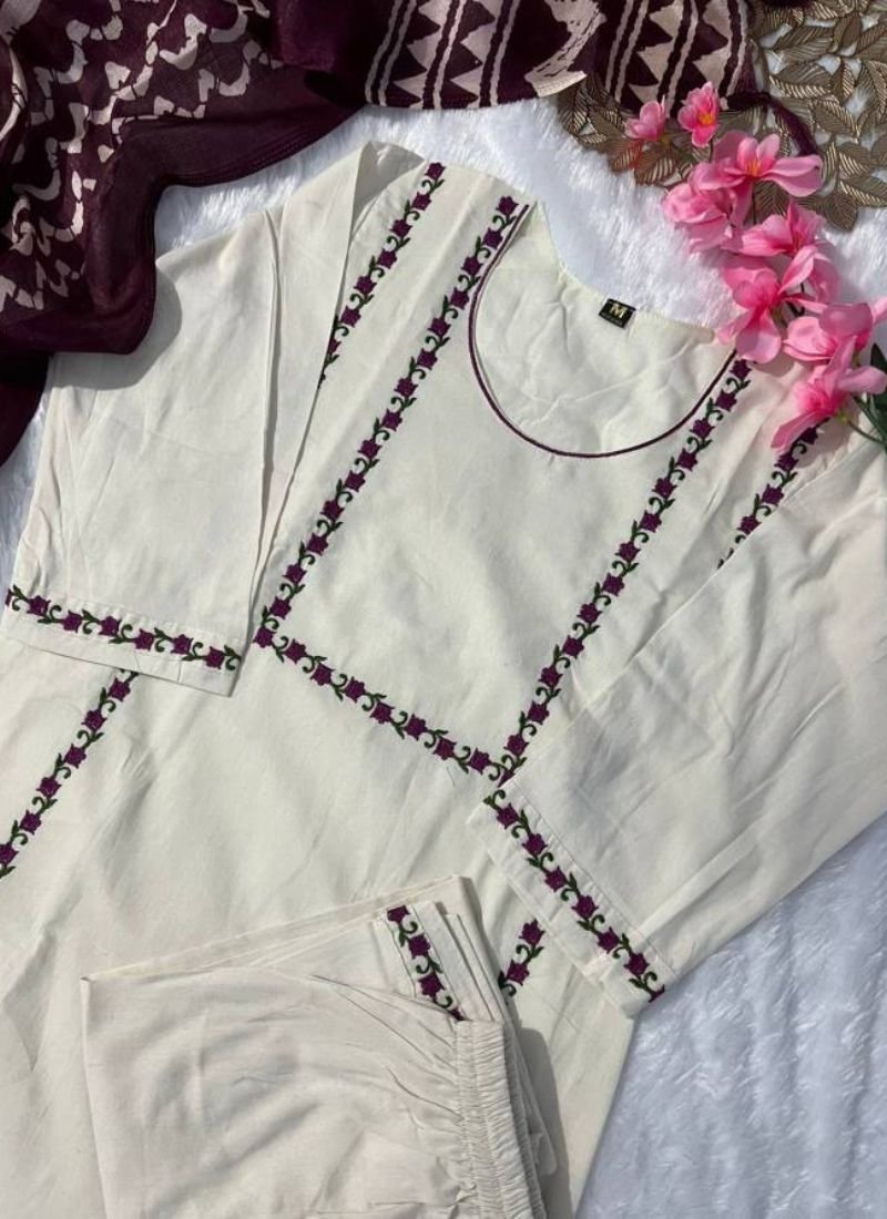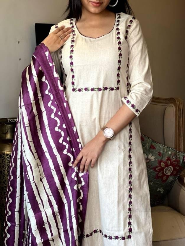 VT Designer Embroidery Khadi Cotton Kurti With Bottom Dupatta At Wholesale Price