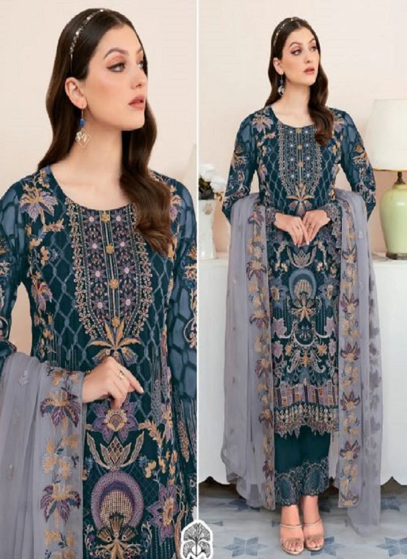 FabricTop : Faux georgette with embroidery, Bottom : Dull santoon, Dupatta : Nazmin with embroidery
