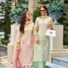FabricTop – Soft organza with fancy embroidery work with moti work & gpo lace | Bottom – Heavy silk | Dupatta – organza with embroidery work
