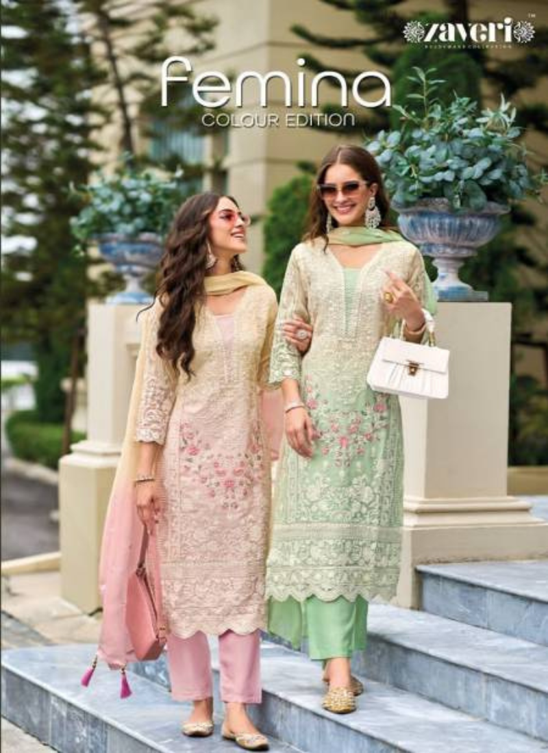 Zaveri Femina Party Wear Organza Wholesale Readymade Suits Catalog