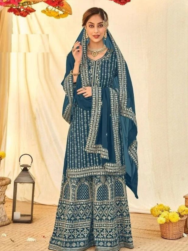 Sajda 1396 Blue Blooming Georgette Wedding Salwar Kameez At Wholesale Price