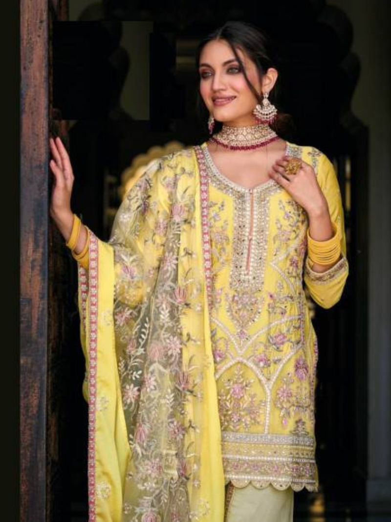 Zaveri Amber Chinon Yellow Colour Readymade Salwar Suits Wholesale Catalog
