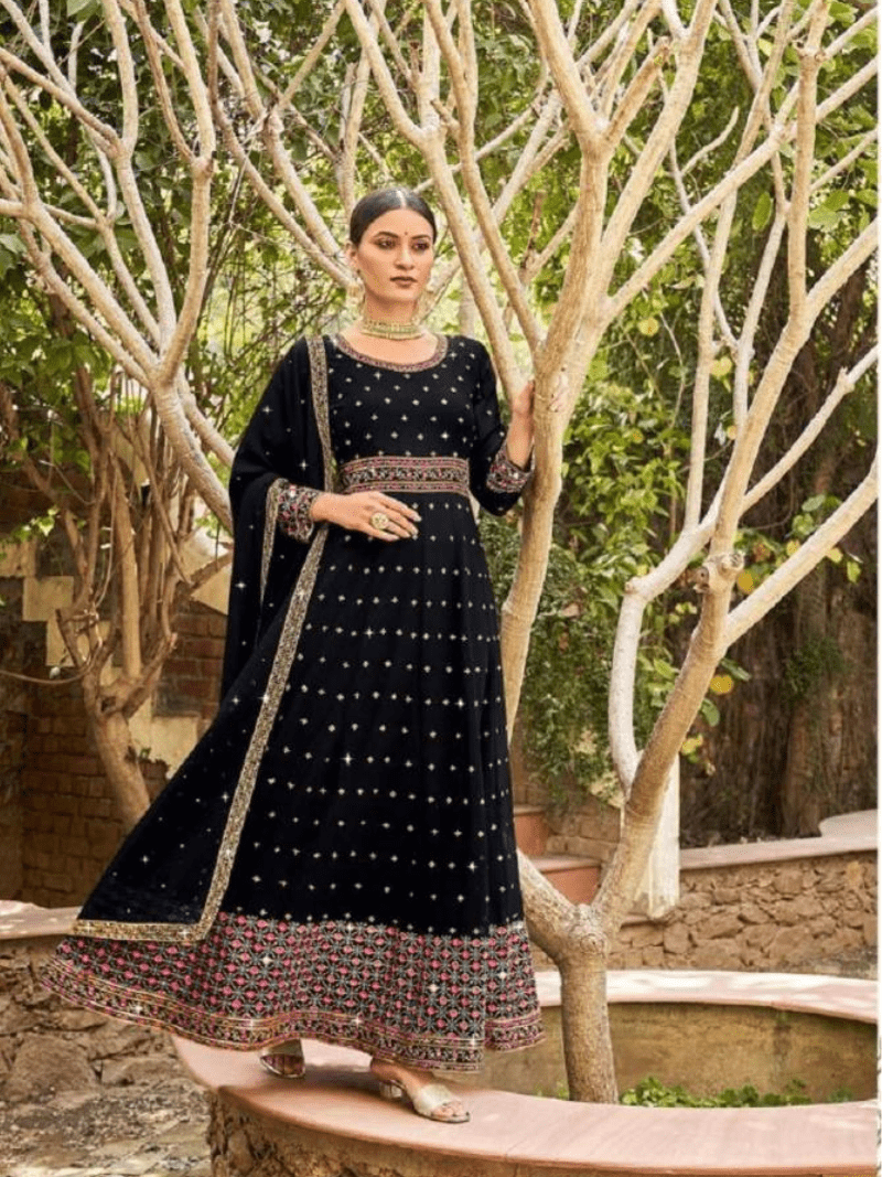 Radha Floral Heavy Embroidered Designer Georgette Gown Catalog