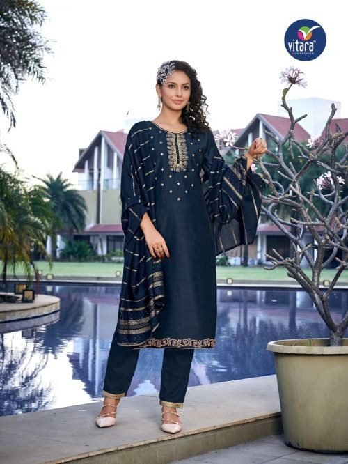 Vitara Kiara Fancy Silk Kurti With Bottom Dupatta Collection